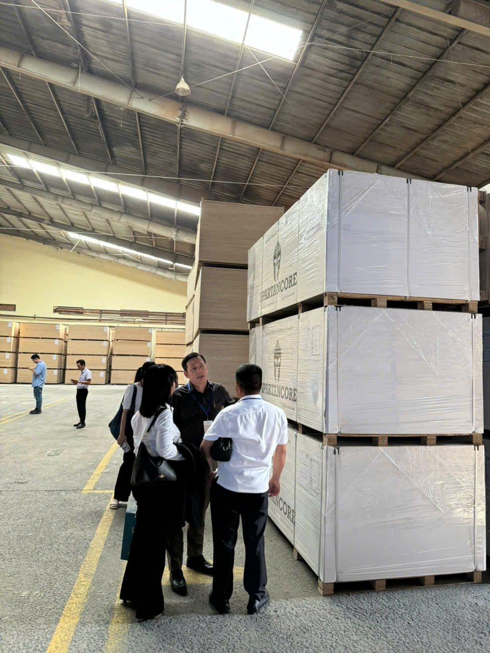 Vị trí nhà máy thuận lợi và dây chuyền máy móc thiết bị và công nghệ sản xuất tiên tiến, đồng bộ và khép kín từ khâu bóc rotary veneer, sấy veneer, ép tấm, ép nguội, ép nóng và máy chà nhám. Công ty sử dụng keo Carb P2 từ các nhà cung cấp chất lượng cao như keo Teckcam, Aica.