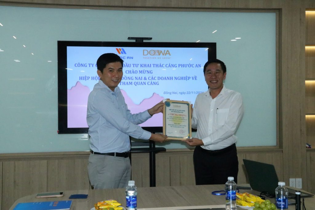 Cũng trong khuôn khổ chương trình, Hiệp hội DOWA đã trao giấy chứng nhận Hội viên mới cho Công ty CP Dầu khí đầu tư khai thác cảng Phước An, chính thức ghi nhận sự gia nhập của Công ty CP Dầu khí đầu tư khai thác cảng Phước An vào mạng lưới Hội viên DOWA, mở ra những triển vọng mới, hứa hẹn tạo ra nhiều giá trị vượt trội cho Cảng.