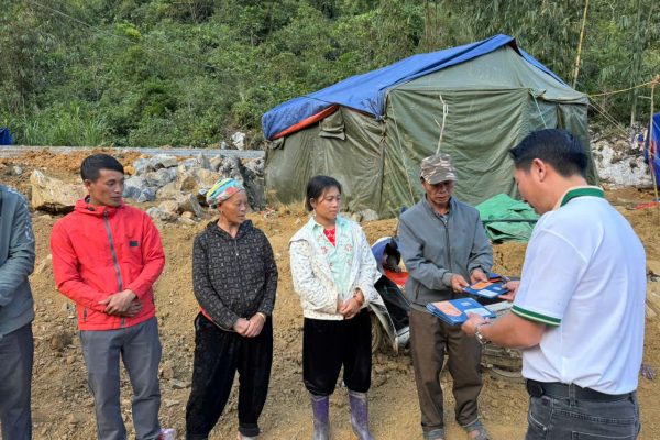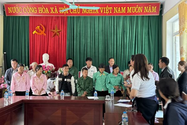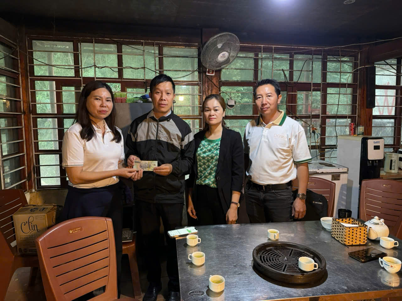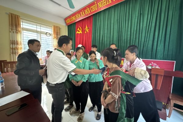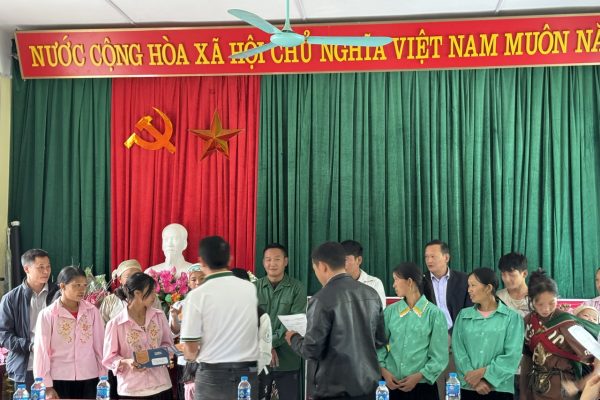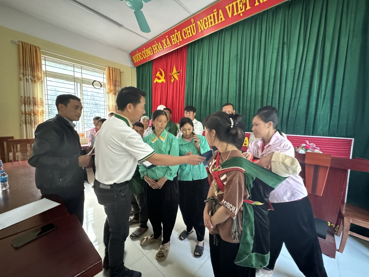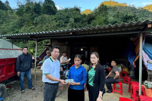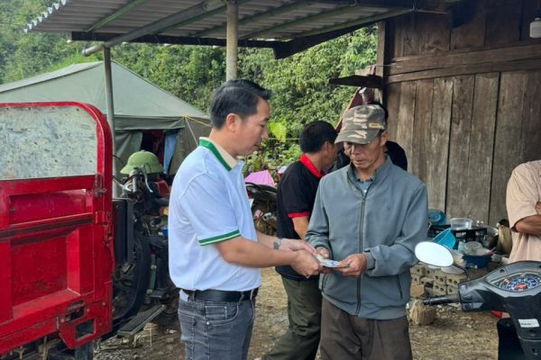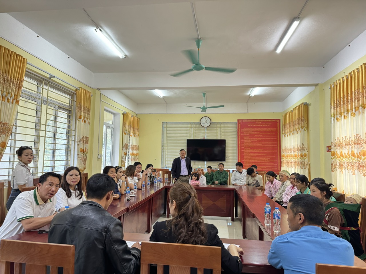 Sau khi trao đổi và làm việc với ông Hoàng Tòn Sao – chủ tịch UBND xã Ca Thành, huyện Nguyên Bình, tỉnh Cao Bằng. Đoàn quyết định trao tặng số tiền còn lại là 22.000.000 đồng để hỗ trợ các gia đình còn lại cần chi phí di dời nhà cửa trước sự chứng kiến của bà Nông Thị Bích Thủy – Chủ tịch MTTQ huyện Nguyên Bình, tỉnh Cao Bằng.
