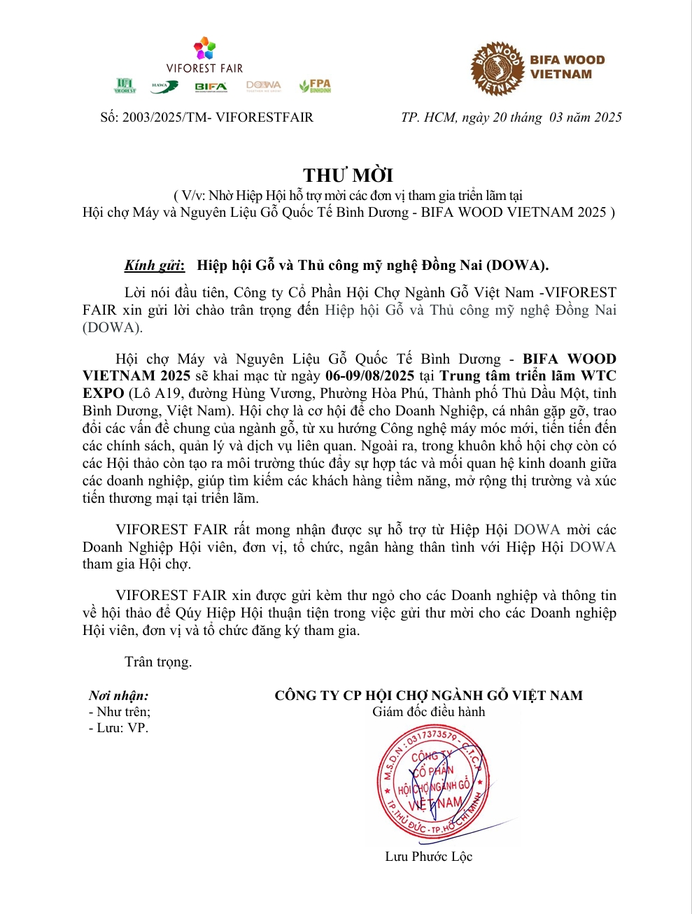 - Đơn vị tổ chức: Công ty CP Hội chợ Ngành Gỗ Việt Nam – VIFOREST FAIR