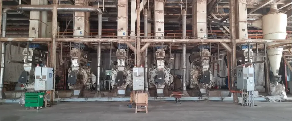– Production line includes: 2 Vietnamese chippers, 4 Vietnamese wet hammer mills, 3 dryers (1 European belt dryer, 2 Vietnamese drum dryers), 2 European hammer mills, 6 European pellet mills, 1 European pellet cooler.