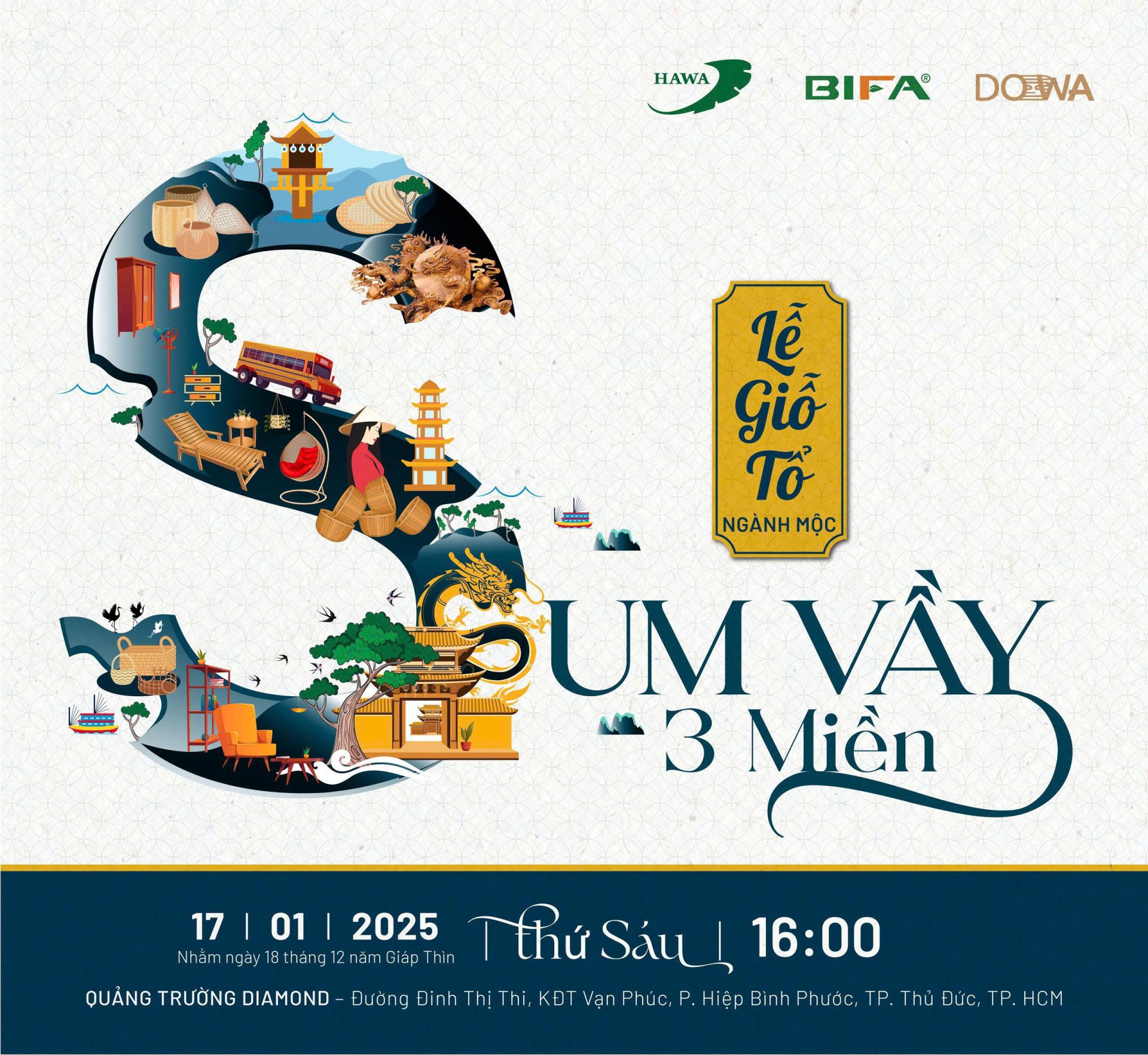 Tiếp tục gìn giữ truyền thống văn hóa tâm linh đầy ý nghĩa này, “Lễ giỗ tổ ngành Mộc 2025″ do 3 hiệp hội HAWA, BIFA, DOWA cùng phối hợp tổ chức với chủ đề “Sum Vầy 3 miền”. Với mục tiêu tìm về cội rễ, khơi lại những giá trị truyền thống từ các làng nghề lâu đời ở 3 miền Bắc – Trung – Nam, cùng hội tụ tinh hoa về dịp đại lễ Giỗ tổ này, để con cháu được bày tỏ lòng biết ơn, kính nghề, tạ nghiệp.