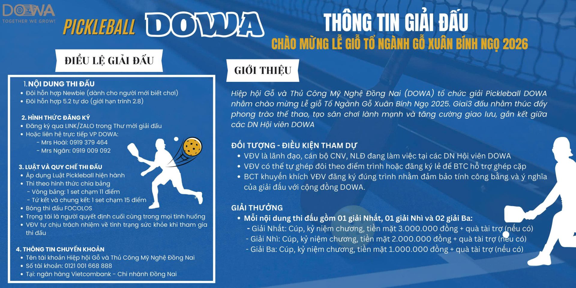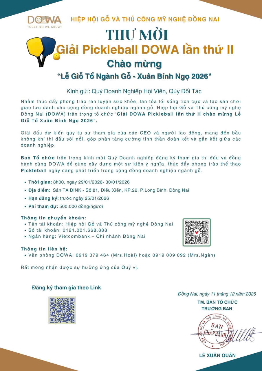 THƯ MỜI GIẢI PICKLEBALL DOWA LẦN THỨ 2