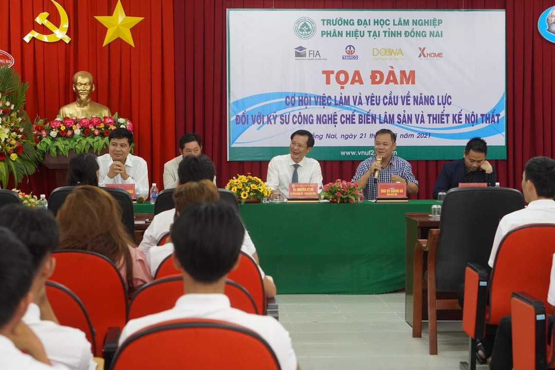 Ngày 21/3/2021 tại Trường đại học Lâm nghiệp phân hiệu tại tỉnh Đồng Nai (VNUF2) phối hợp cùng Hiệp hội gỗ và thủ công mỹ nghệ tỉnh Đồng Nai (DOWA), tập đoàn TAVICO, công ty XHome đã tổ chức buổi toạ đàm “Cơ hội việc làm và yêu cầu về năng lực đối với kỹ sư Công nghệ chế biến lâm sản và Thiết kế nội thất” dành cho sinh viên khoa Công nghiệp và Kiến trúc.