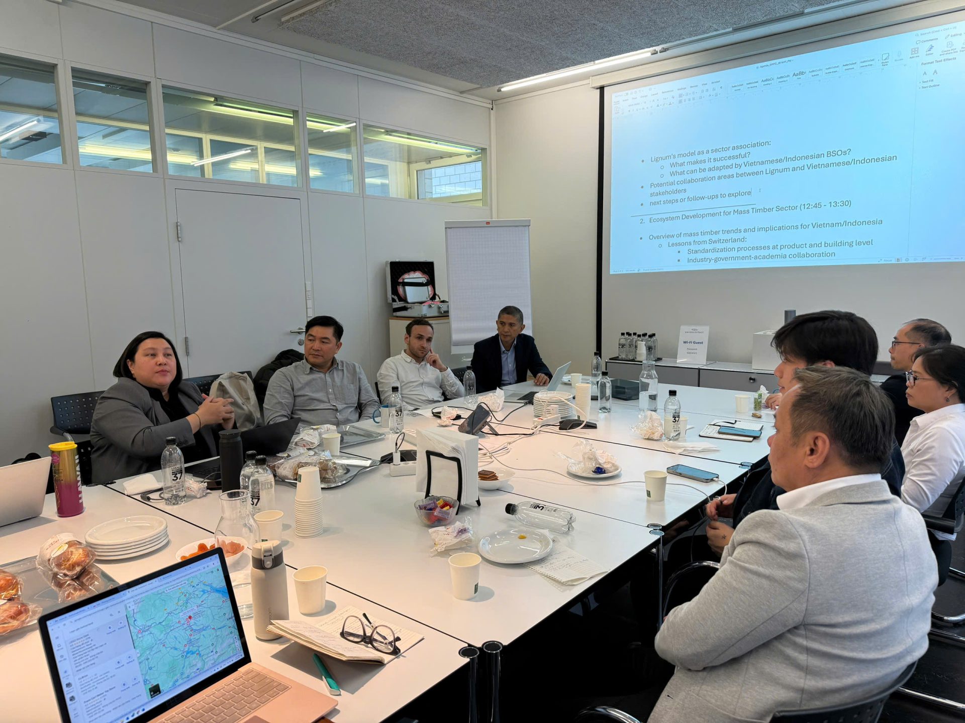 - Cuộc họp có sự tham gia của các đại diện từ Việt Nam, Indonesia và Thụy Sỹ, tập trung vào các hoạt động khai thác gỗ bền vững và phát triển thị trường.